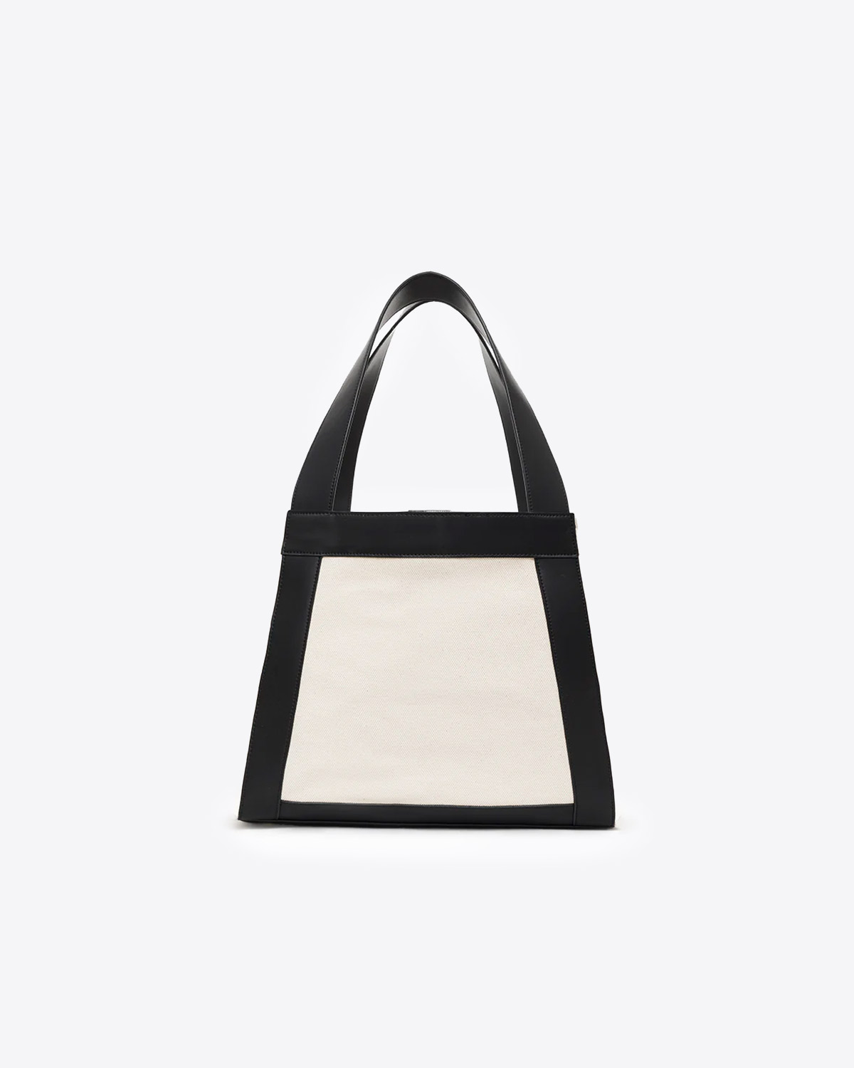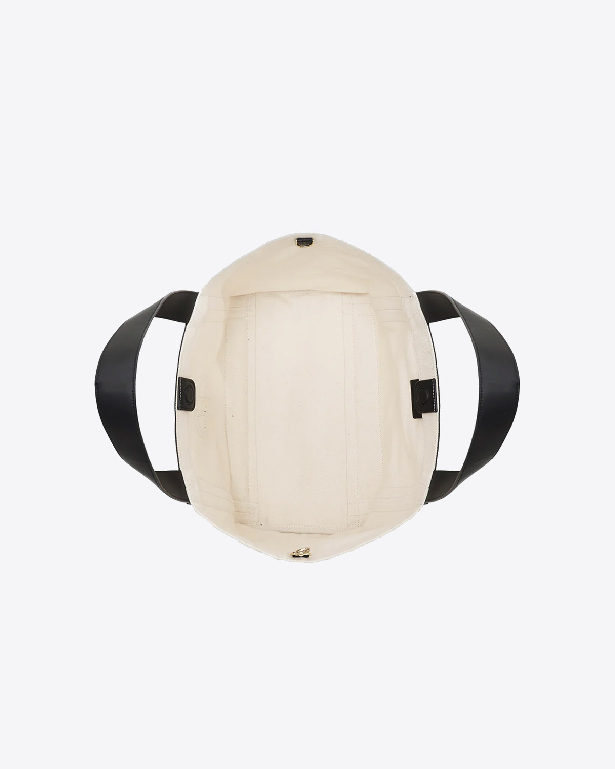 - Shopping bag - Two black leather handles - Magnetic closure - Black AB monogram logo on front - Leather base - Unlined - Composition: 100% cotton and leather