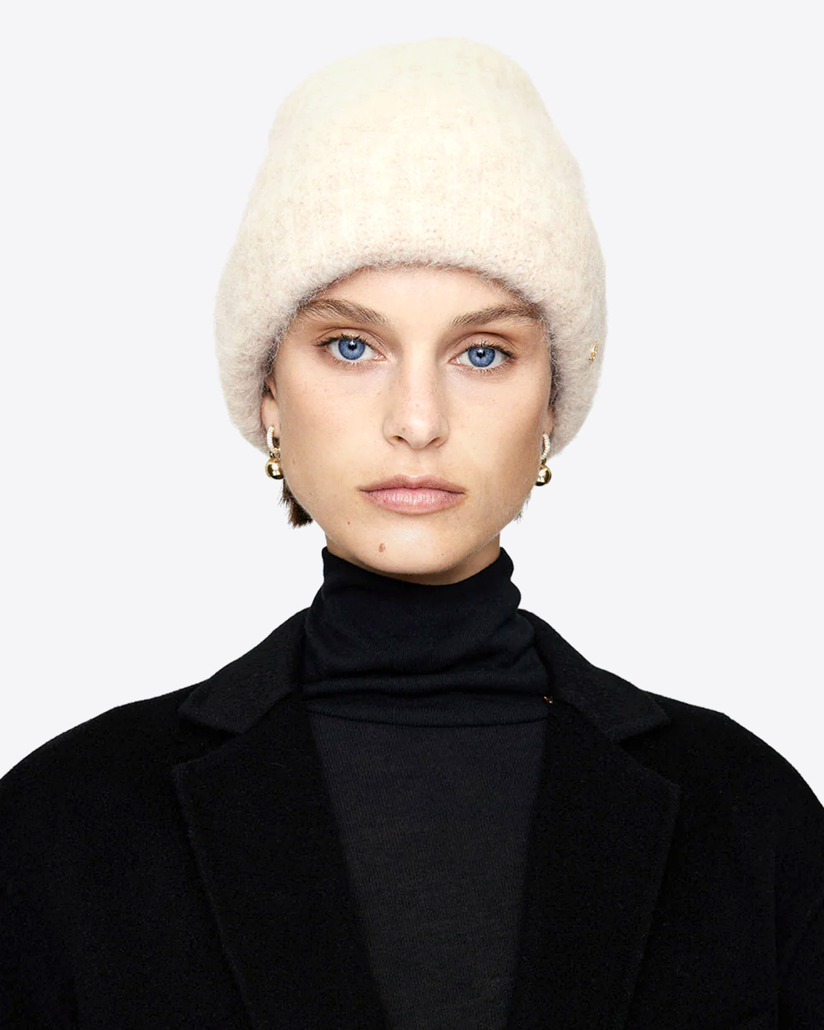 If you are as attached to comfort as to aesthetics, know that designer Anine Bing has the same criteria as you. Its Vero hat is as warm as it is beautiful and comfortable. Yes, it ticks all the boxes! We love its XXL volume and its wide, warm edges which give a great look, its soft white alpaca. Jingle All the Way !