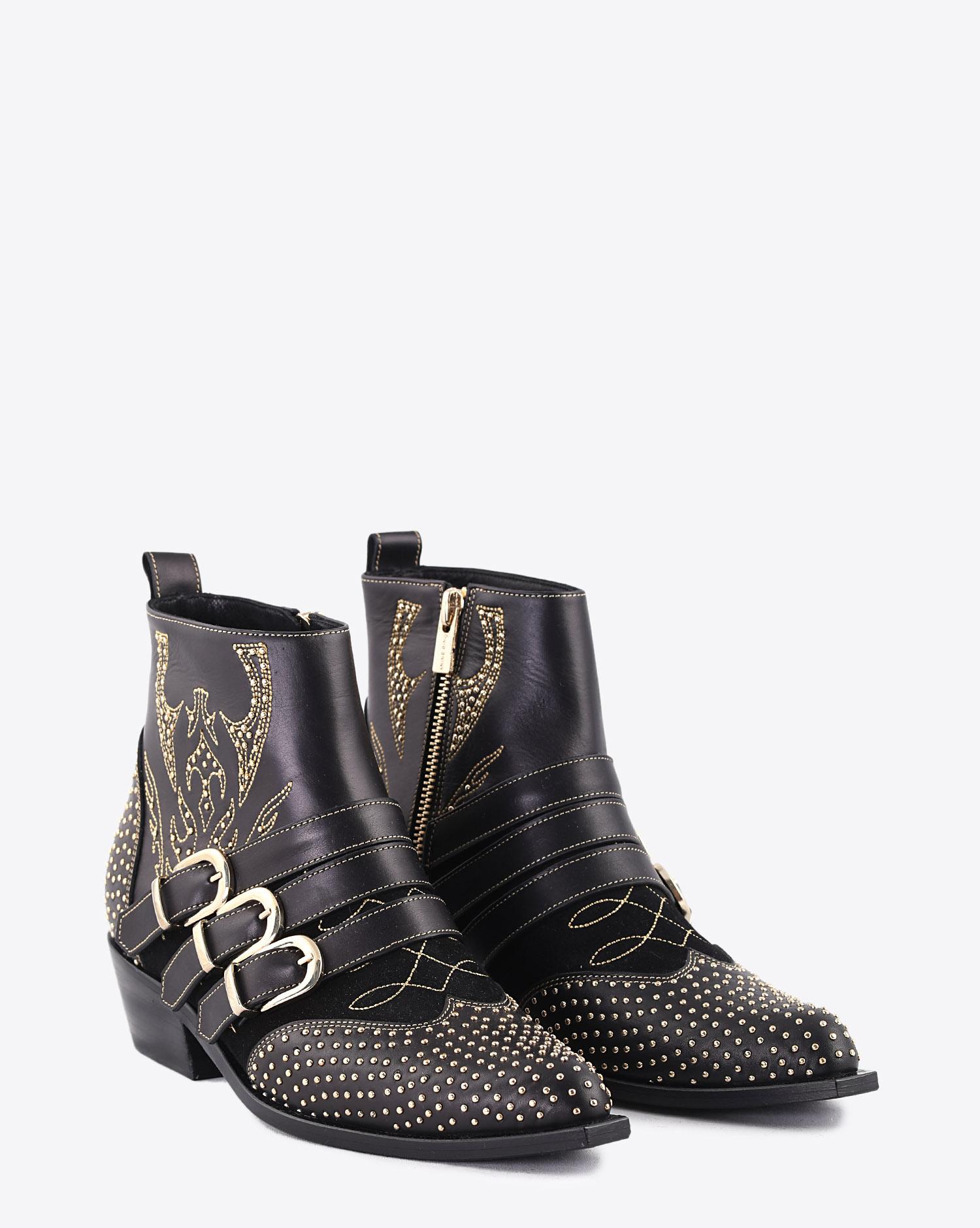 Adopt an easy and trendy rock look with these Penny boots by Anine Bing. Emblematic of the Los Angeles designer's style with their rock look, these studded boots with an urban cowboy style will enhance any of your silhouettes. Wear them with straight jeans and a timeless blazer jacket of the same brand or with a noon-length dress.