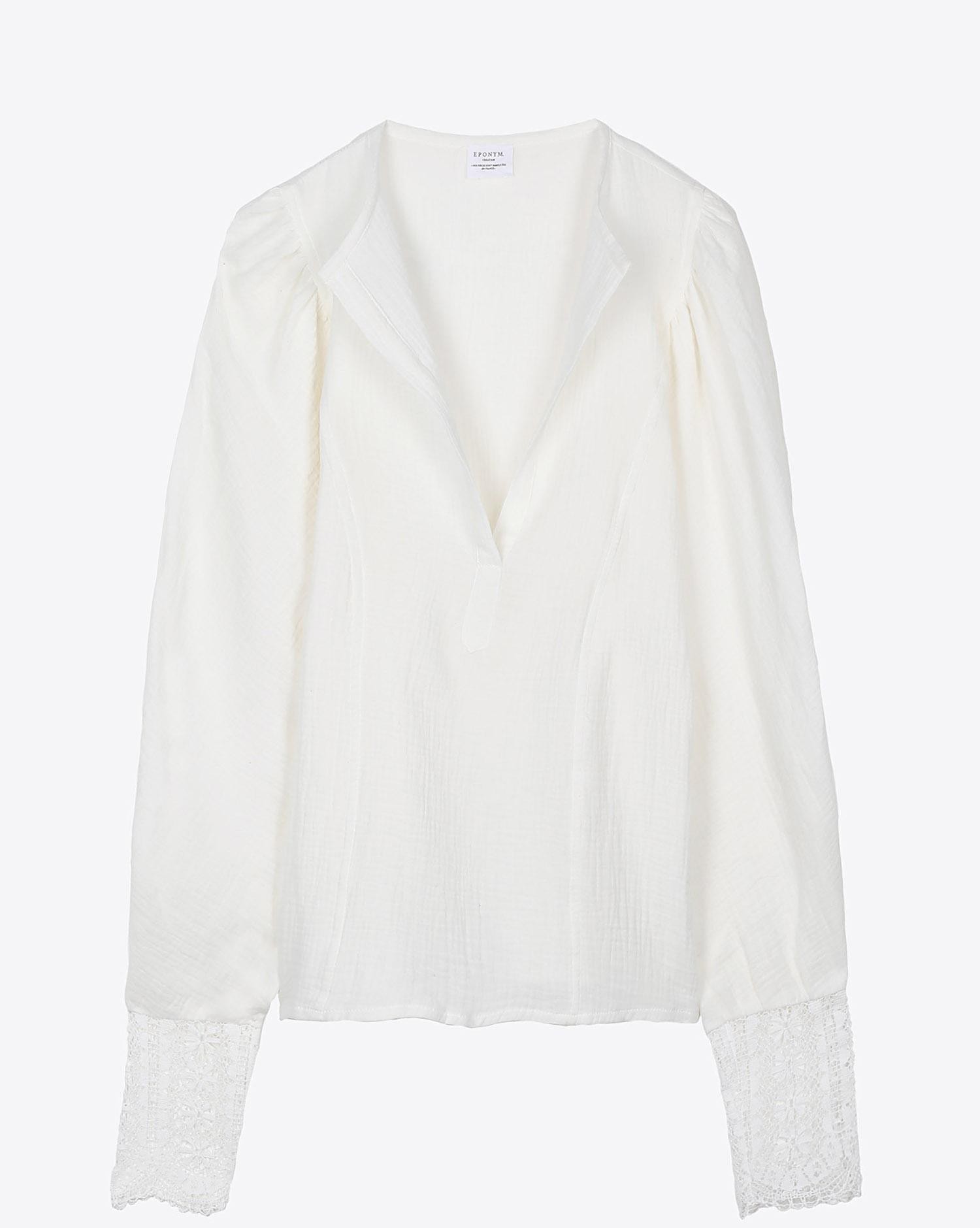 Discover the subtle creations of Eponym Creation thanks to this blouse as chic as it is trendy. Adopt this Lena model with lace sleeves to give rock and bohemian look to your outfits. It's a big yes with slim jeans and rock boots! Ideal in summer, it will also be wonderful under a large oversized coat in the fall.