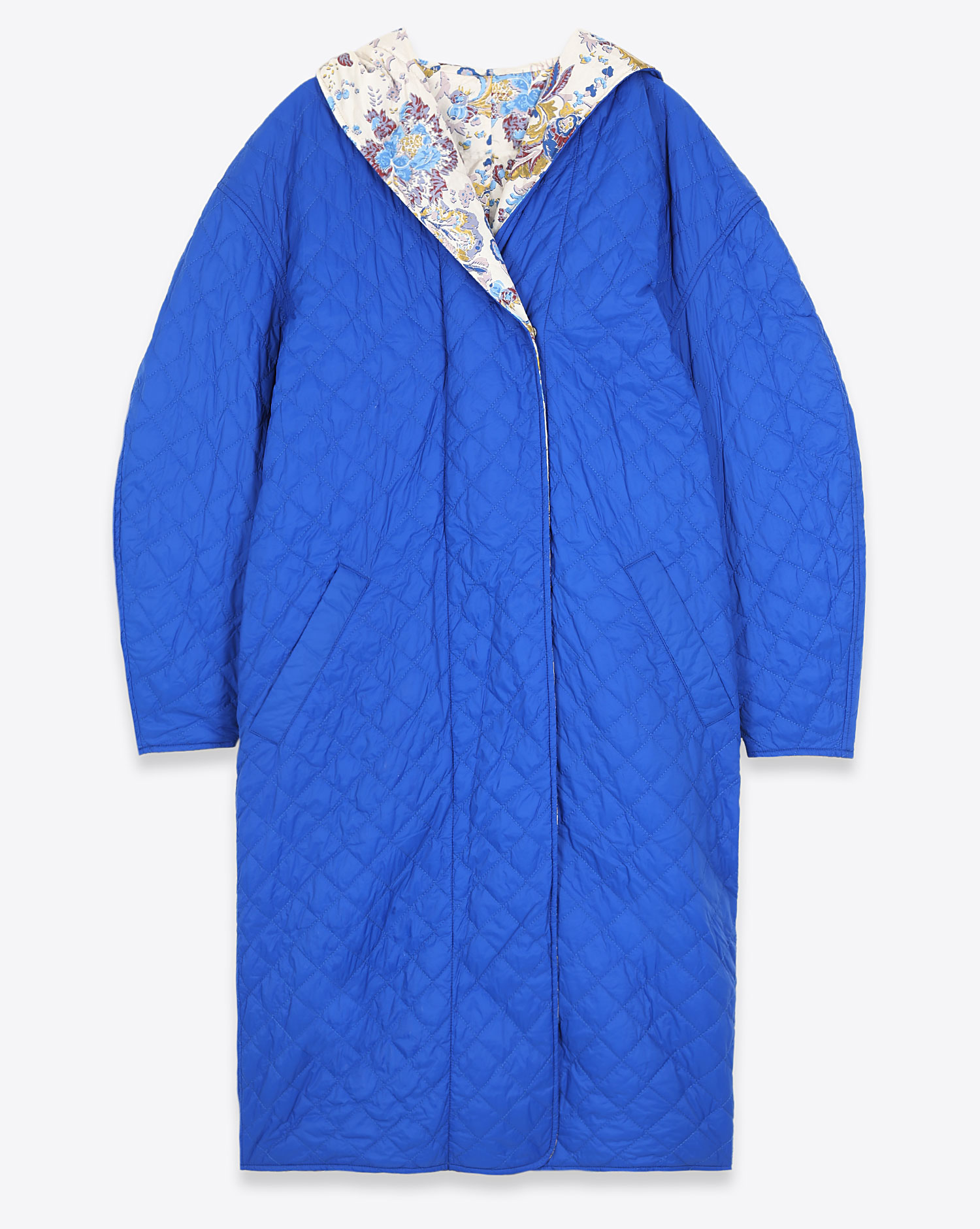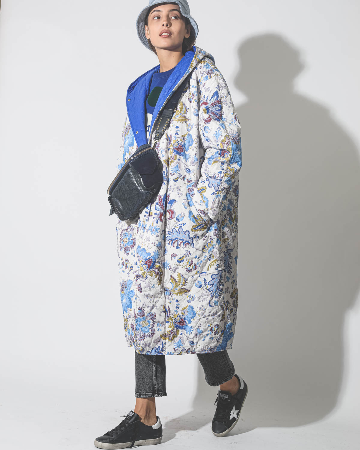 Isabel Marant spoils us and imagines a two-in-one coat with this printed and blue Dean model. On the one hand, enjoy a beautiful floral and retro print on an ecru background and on the other, bet on color and good humor with an electric blue. It just goes to show that comfort and style can go hand in hand.