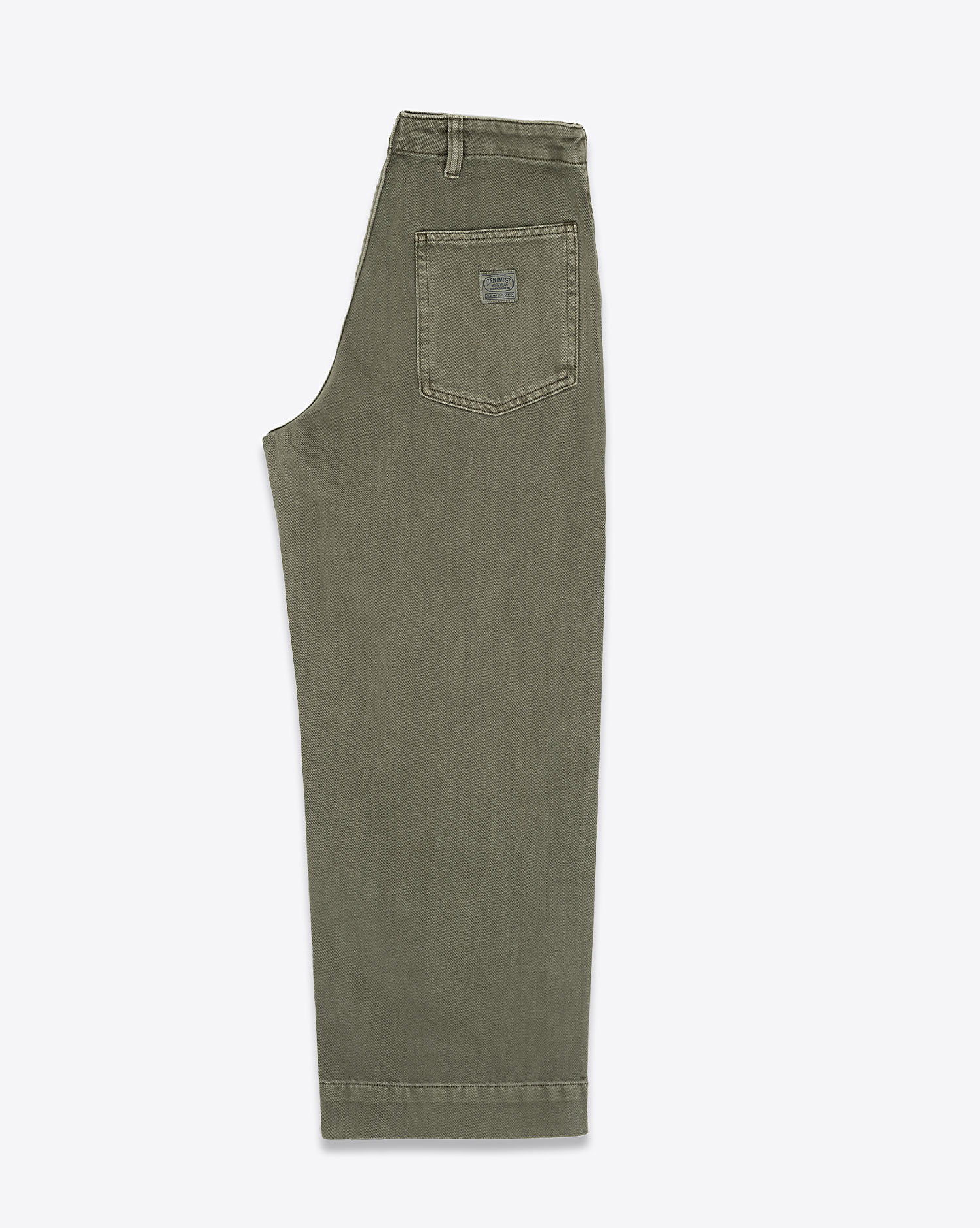 Ideal to complete a casual wardrobe, these oversized Georgia jeans - Olive green by Denimist are the piece you need. We love its army-inspired color which gives a vintage touch to our look. Its generous proportions and the straight cut of the pants allow it to highlight all body types. Ideal with sneakers for a casual look, these straight khaki pants are also very modern worn in a more preppy way with moccasins or more rock with a leather jacket.