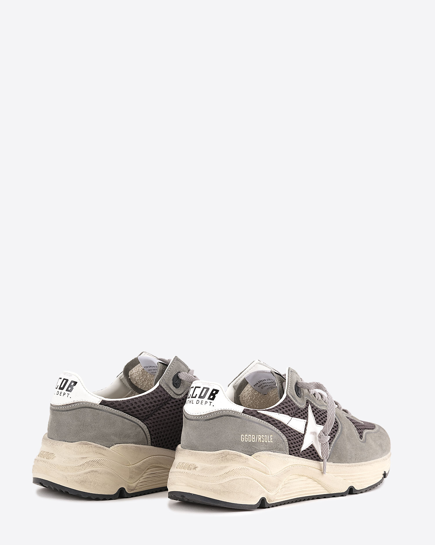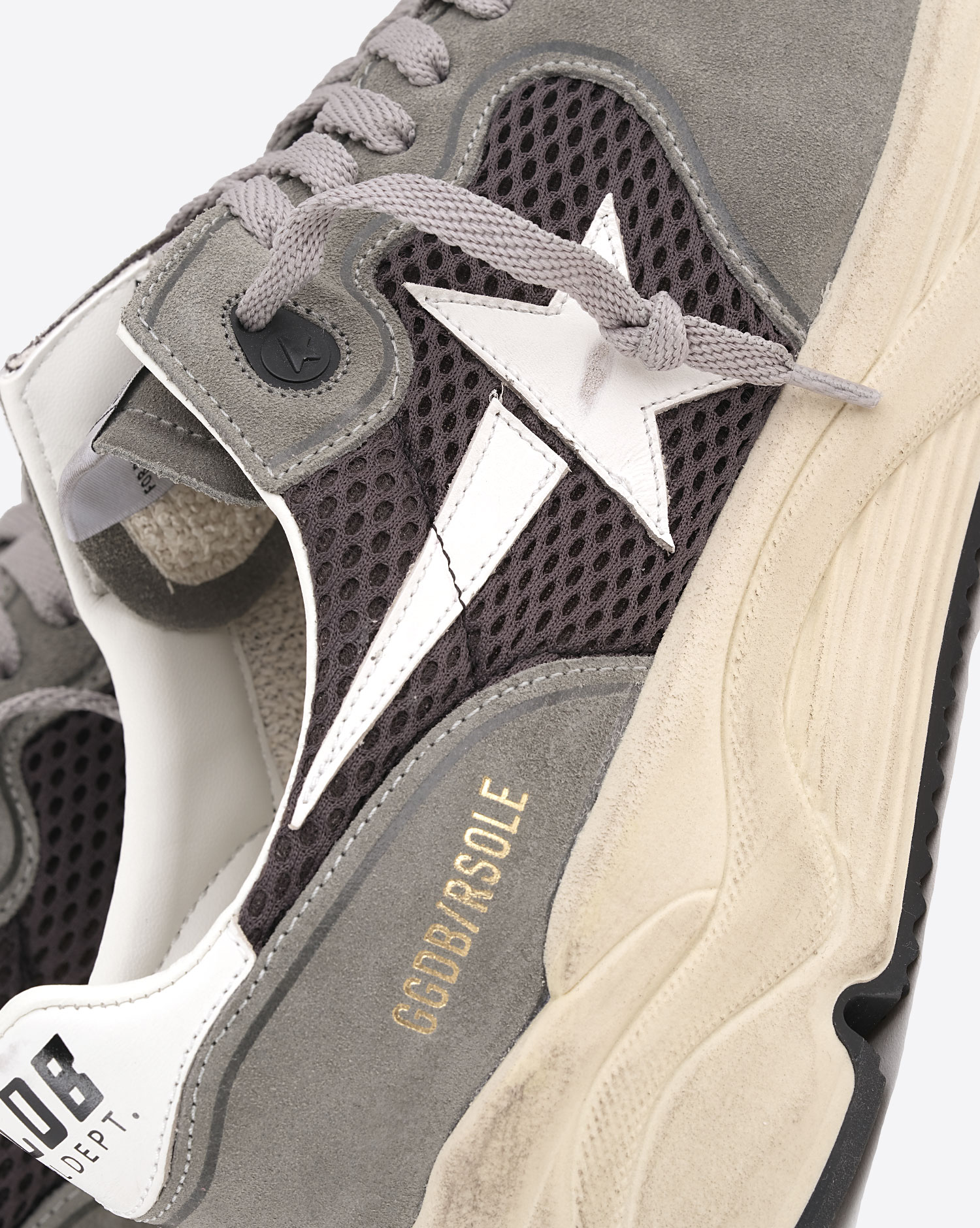 Sneakers Running Sole Golden Goose men's khaki fishnet grey suede yoke white star