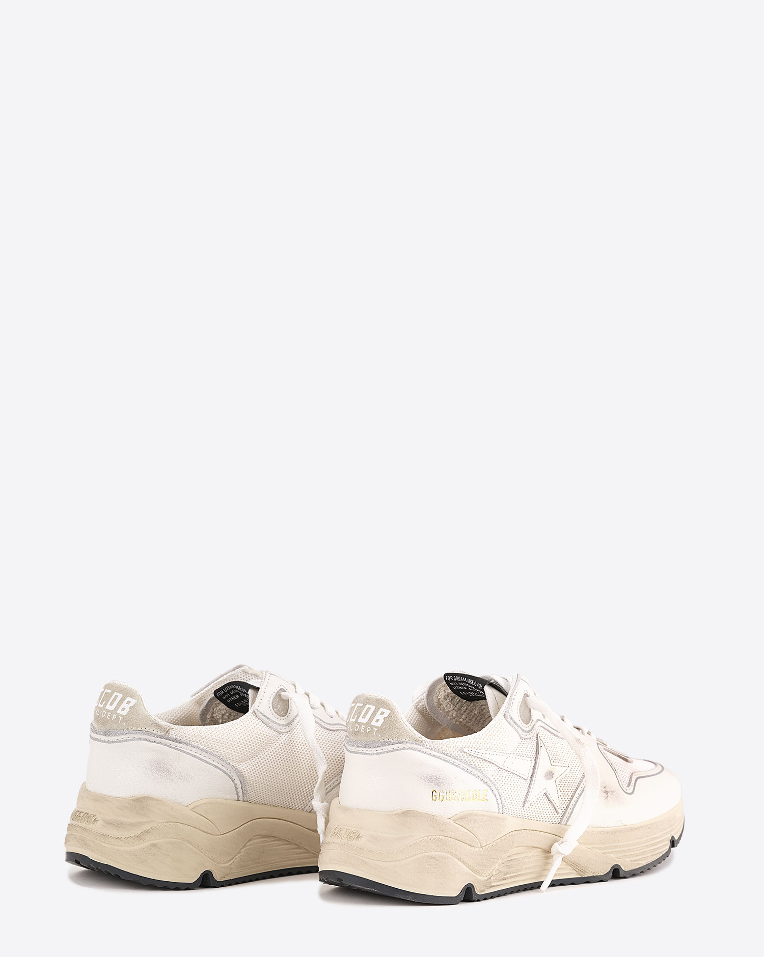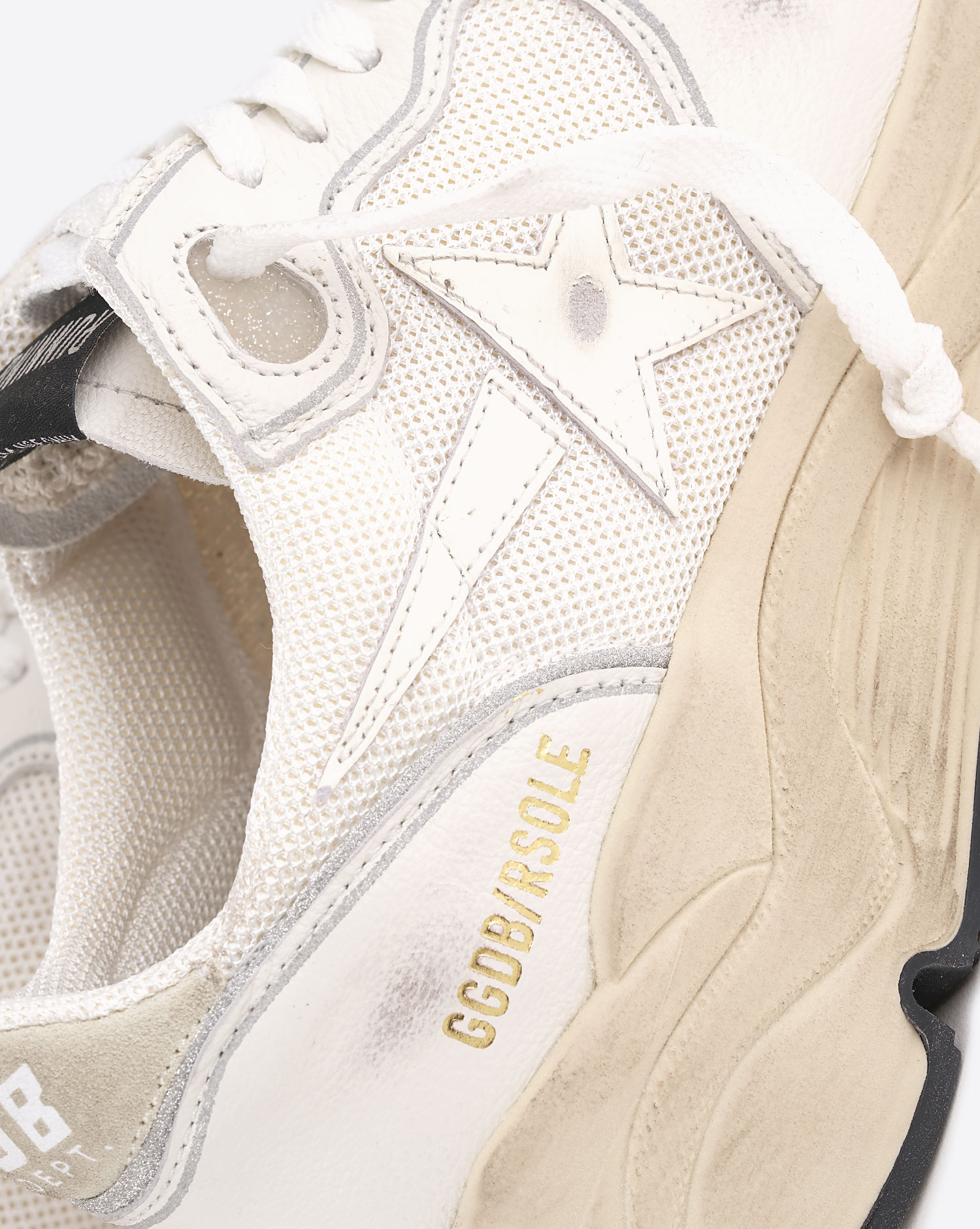 - Low running trainers - White laces - Shooting star in smooth white leather - White leather tongue - Gold GGDB/RSOLE lettering on the outside - Suede backing with white "GGDB ATHL DEPT" lettering - Optical white nappa leather backing, highlighted with silver edging - White mesh upper with tone-on-tone nappa leather trim - Signature vintage finish - Handcrafted in Italy - Composition: 52% goatskin leather - 40% polyester - 5% cowhide leather - 2% polyurethane textile - 1% polyamide - Lining: 49% cotton - 26% polyester - 22% cowhide - 3% polyurethane textile - Sole: 100% rubber
