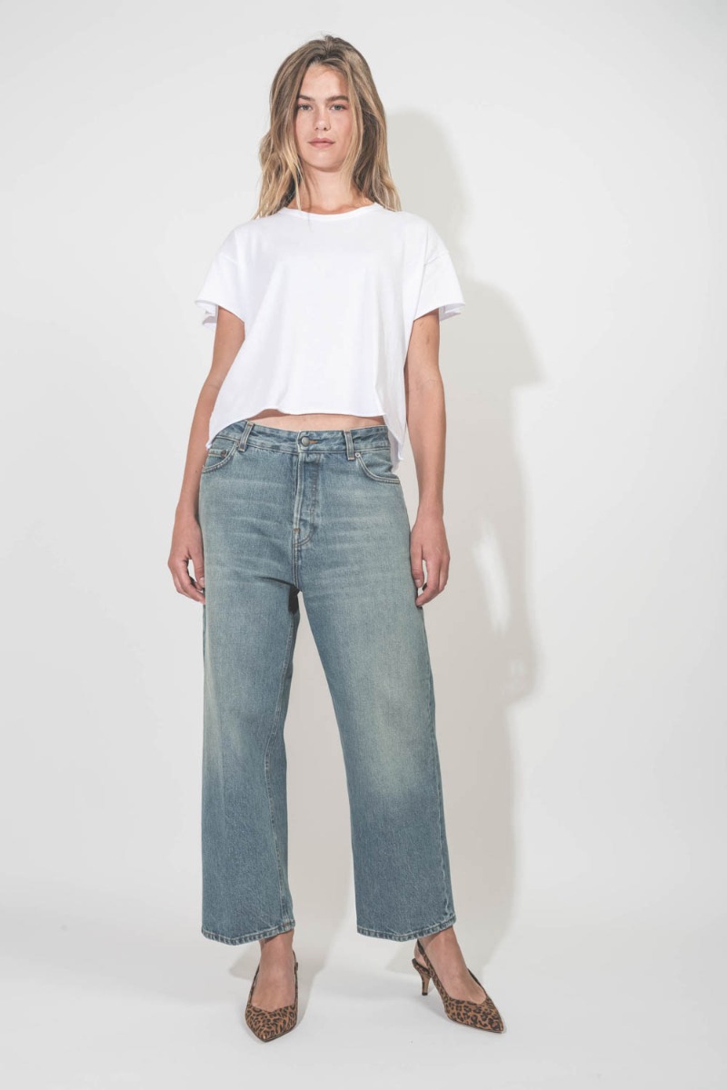 For a fresh daytime look, pair them with a white or pastel t-shirt and low sneakers. For a more polished style, add an oversized blazer and boots. Made in Italy, these jeans are an essential piece to elevate your casual-chic wardrobe.