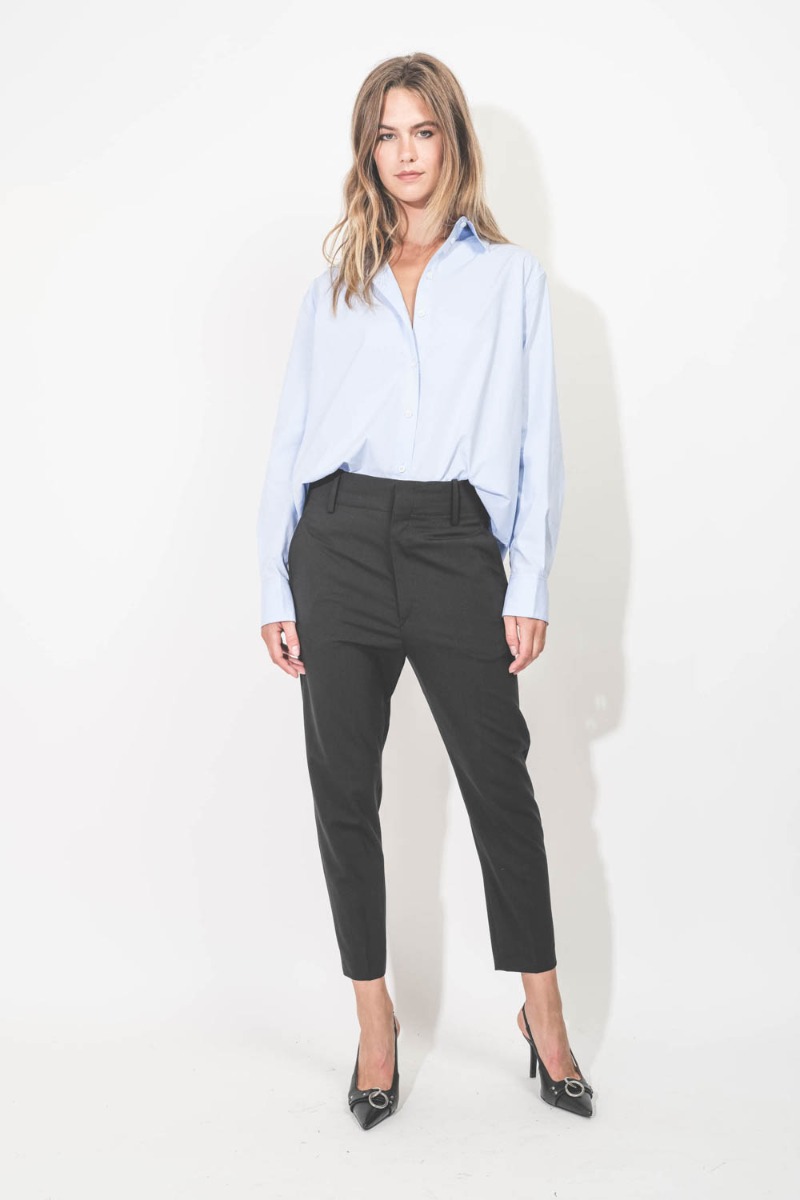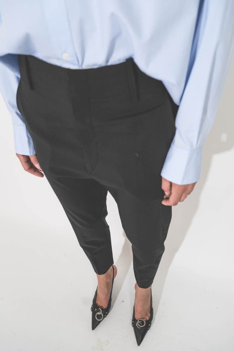 - High-waisted trousers with a masculine cut