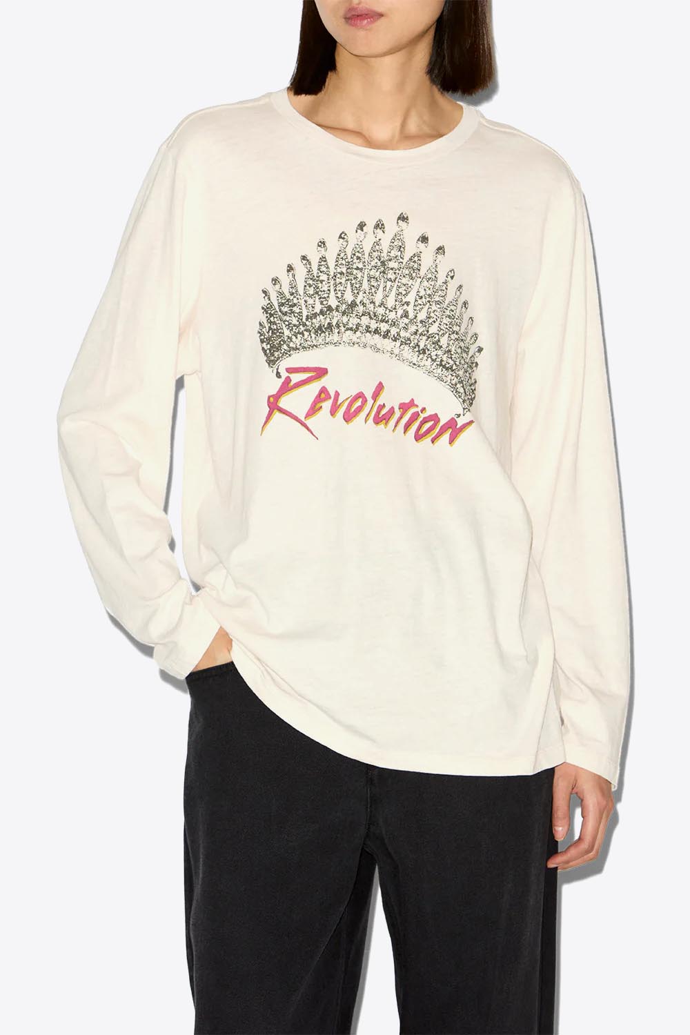 - Straight T-shirt - Long sleeves - Round neckline with ribbed finish - Tiara print and ‘Révolution’ in red on front - Straight base - Composition: 100% organic cotton