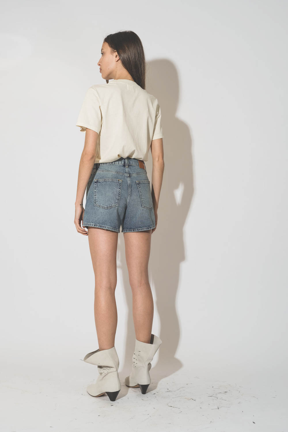 - Short-sleeved tee-shirt - Round collar - Marant logo on front - Worn-effect collar, sleeves and base - Composition: 100% organic cotton