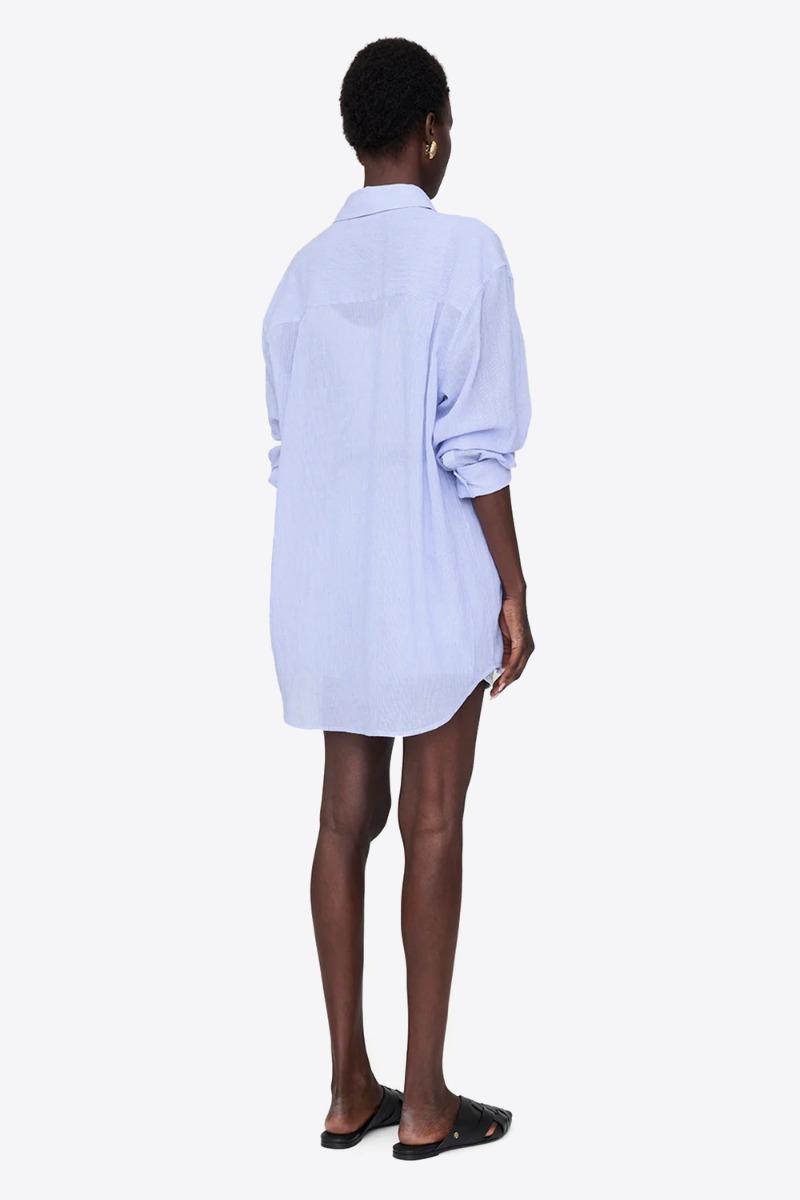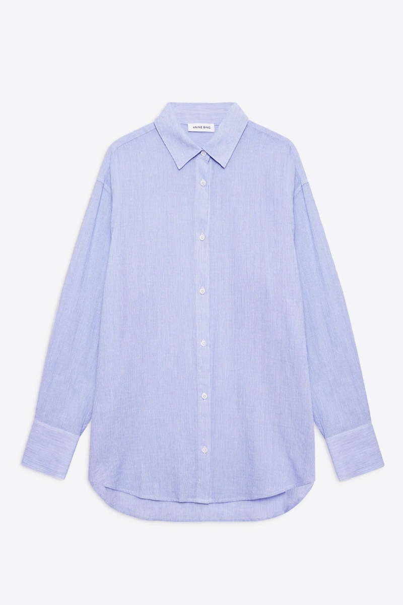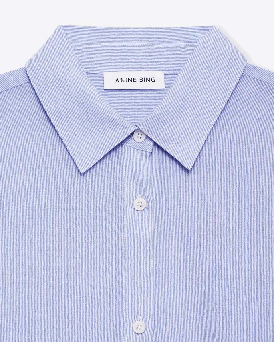 Chemise Plaza Anine Bing en voile de coton fines rayures bleues ciel et blanches