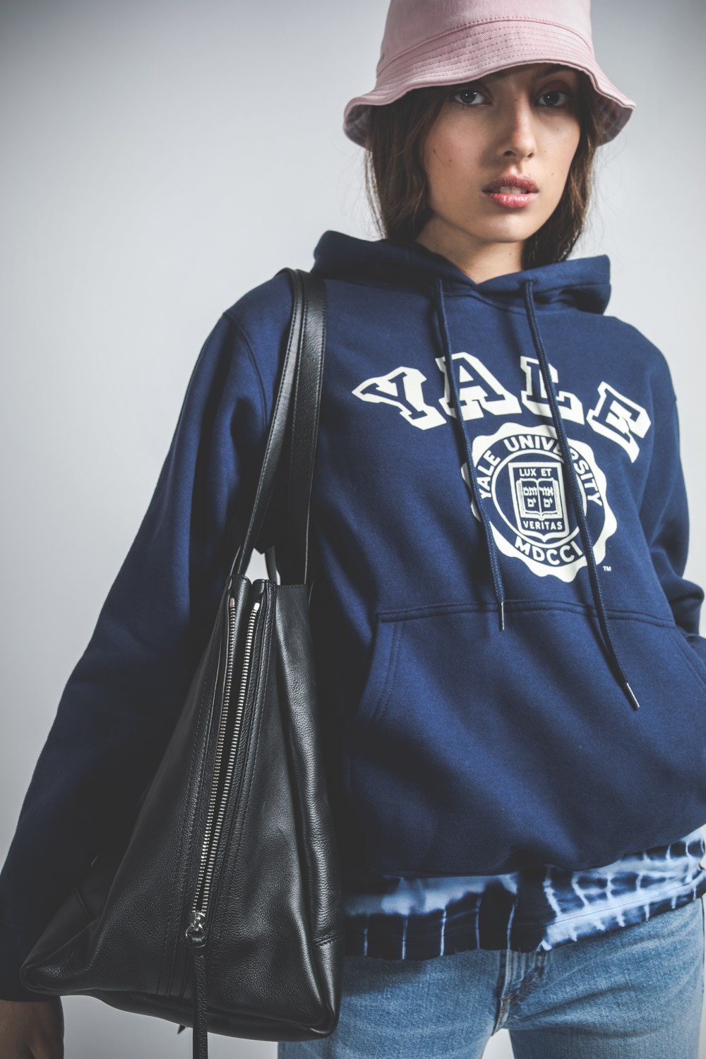 Sweat-shirt Yale hoodie Denimist coloris navy sérigraphie Yale University.