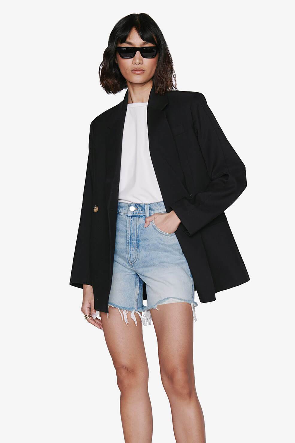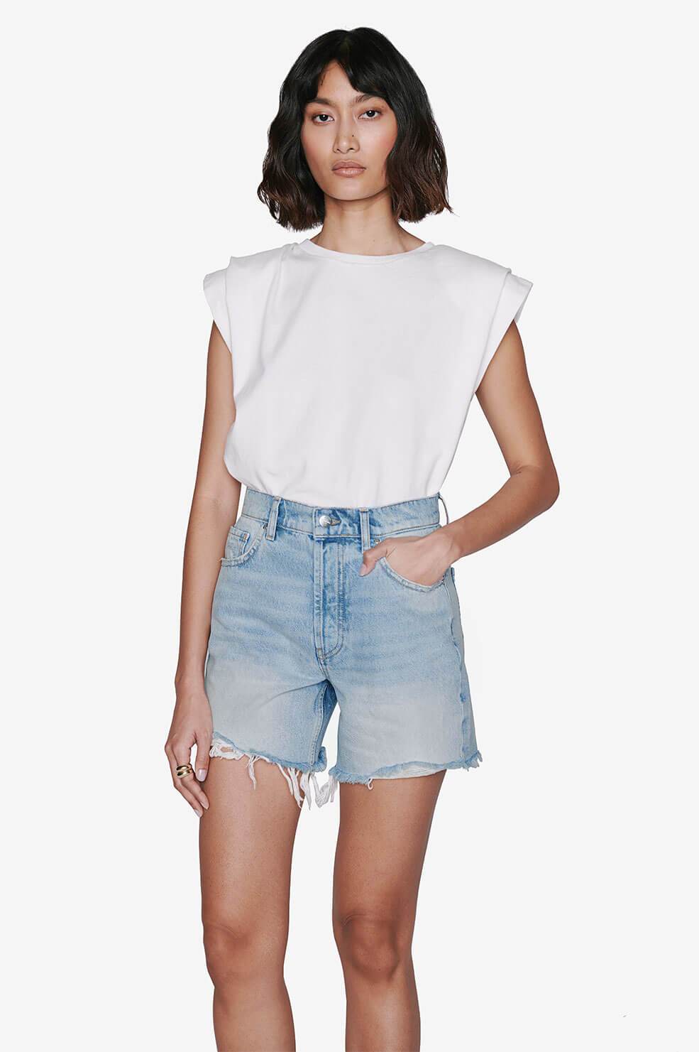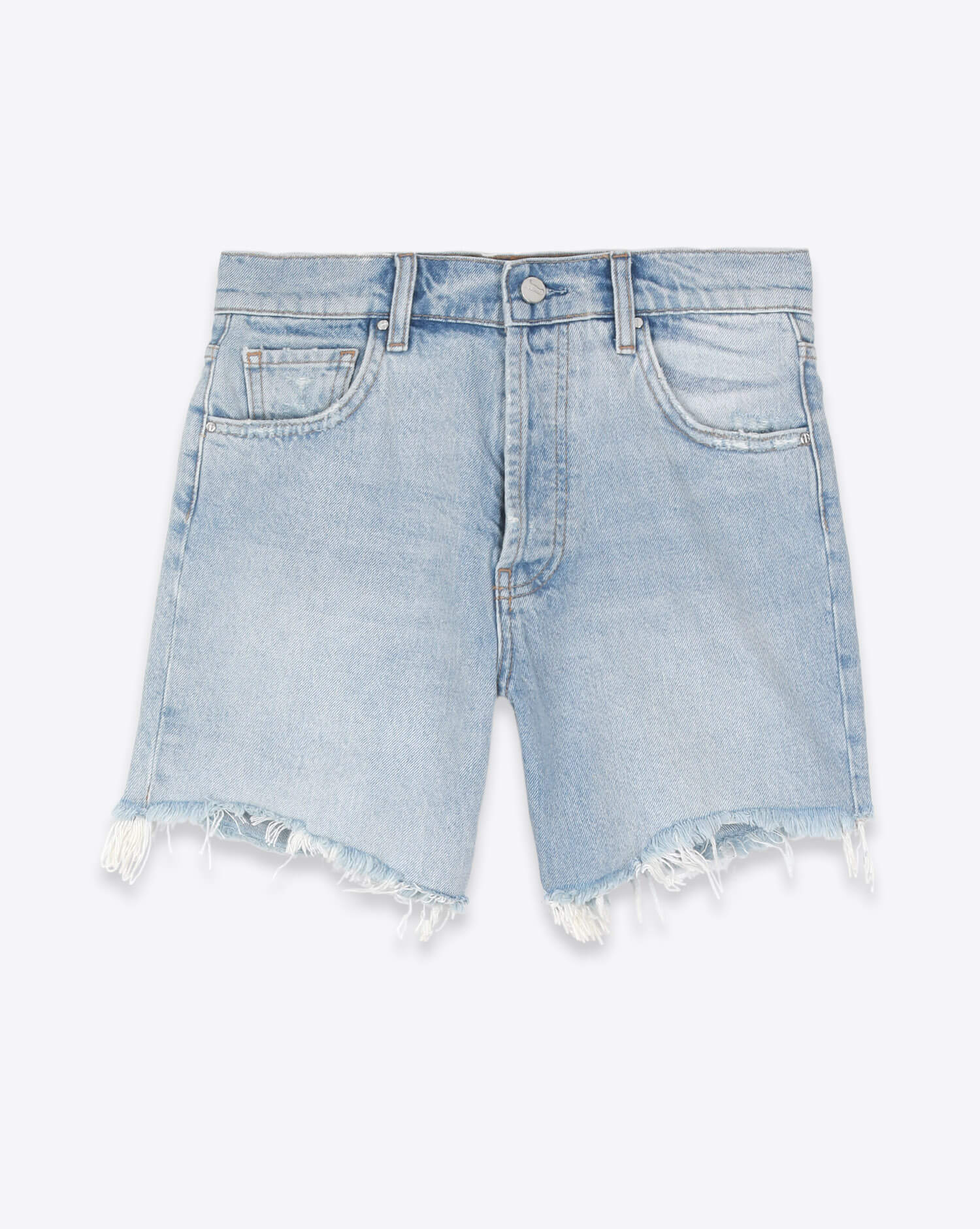 Aussi bien inspirée par le style minimaliste scandinave que par l'esprit rock bohème de Los Angeles, Anine Bing est à l'origine de vêtements intemporels, que l'on porte au fil des saisons sans jamais se lasser. La preuve avec le short Kit, dont le délavage Easy Blue rappelle l'esprit "effortless" californien. Pour une tenue casual chic réussie, mariez-le à un tee-shirt blanc surmonté d'un blazer noir, une paire de sandales plates en cuir naturel et un petit sac à main. Les pochettes de la créatrice Marie Turnor, également disponibles sur le site de La Grande Boutique, seront un choix idéal.