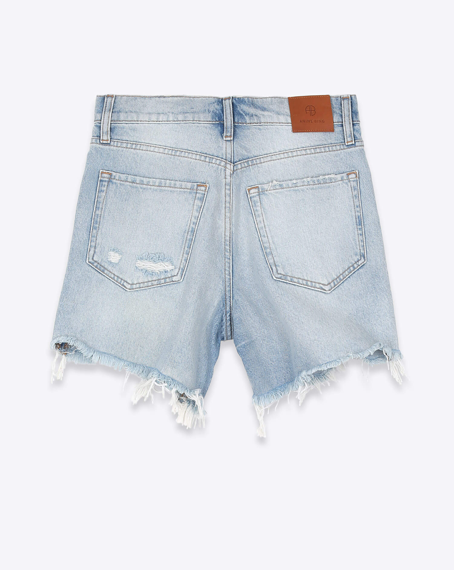 - Short taille haute - Ceinture avec passants - Deux poches et une poche ticket à l'avant - Deux poches plaquées à l'arrière - Fermeture un bouton et zip - Bas de jambe finition bord franc effilé - Jacron en cuir Anine Bing cousu à l'arrière - Coupe boyfriend - Composition 100% coton