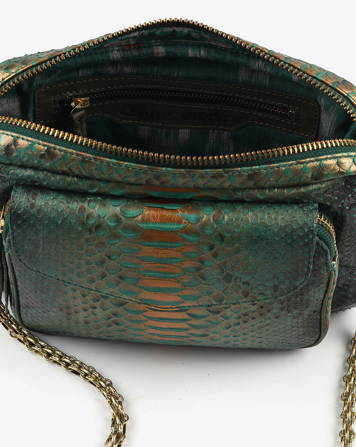 Sac Big Charly Claris Virot en python vert foncé doré.