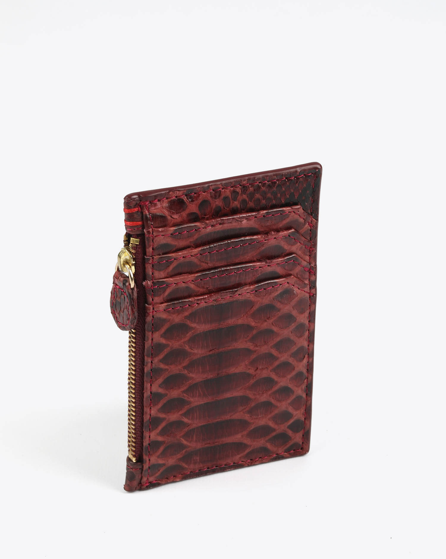 - Porte carte rectangulaire - Un compartiment zippé pour monnaie - Fentes pour cartes - Composition: 100% python