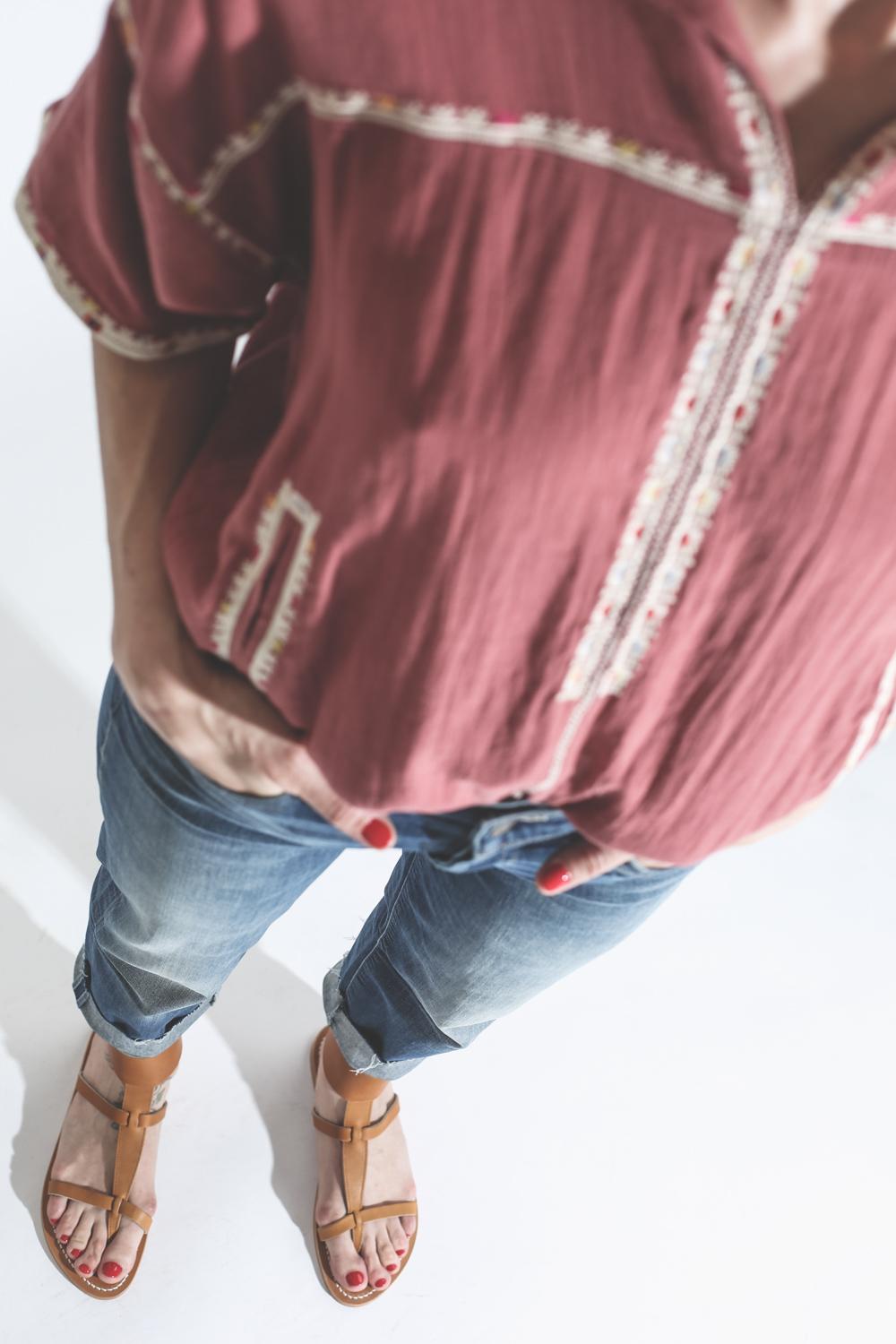 Jean court en coton stretch, taille haute, jambes amples. Chevilles coupées francs, 5 poches, braguette zippée. Détail : Longueur 92cm, entrejambe 25cm, ouverture de cheville 17cm. 92% Coton 6% Polyester 2% Elasthane. Ce modèle taille normalement, nous vous conseillons de prendre votre taille habituelle.
