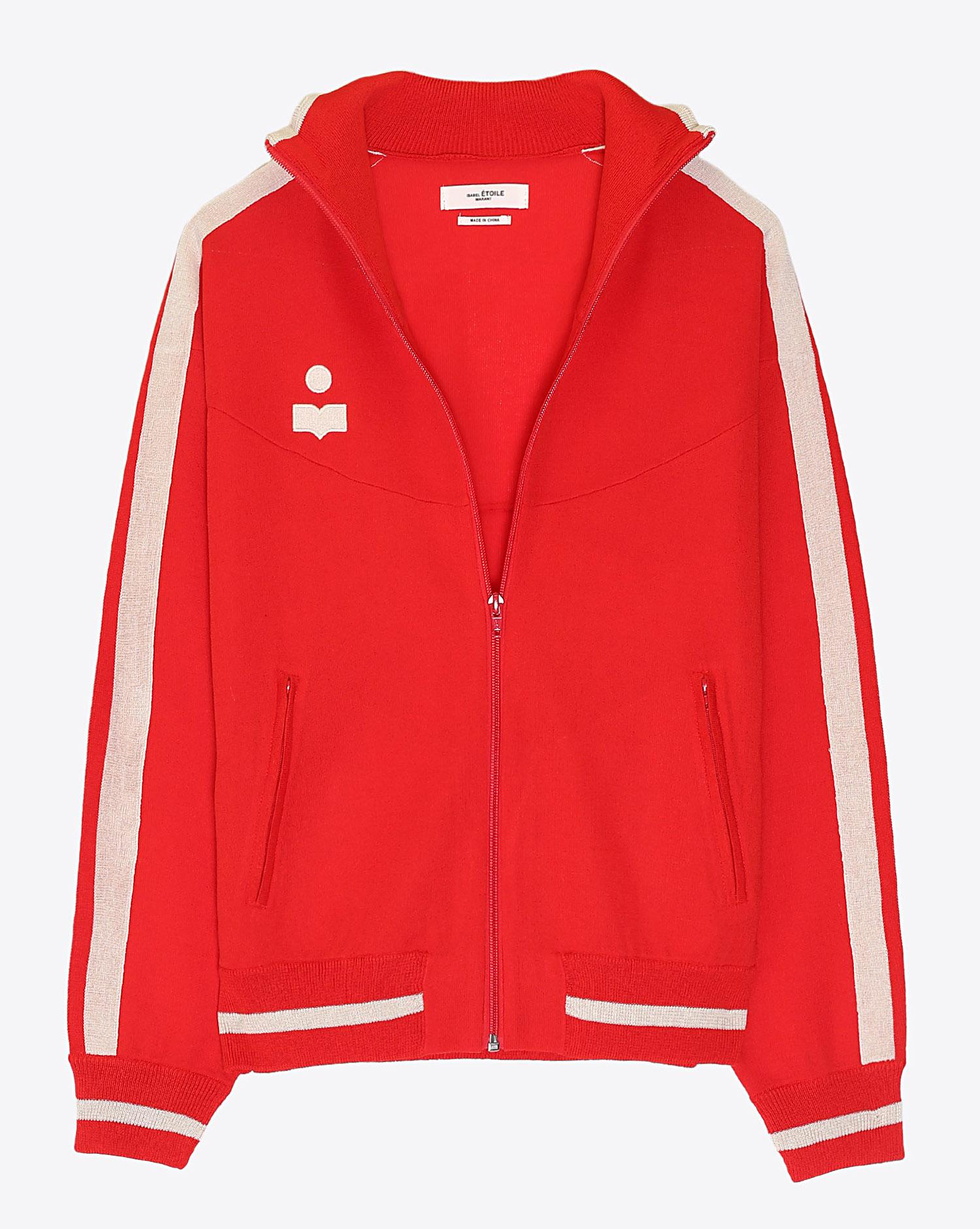 Rayure contrastée sur les manches, bas de corps et poignets, logo contrasté sur la poitrine.