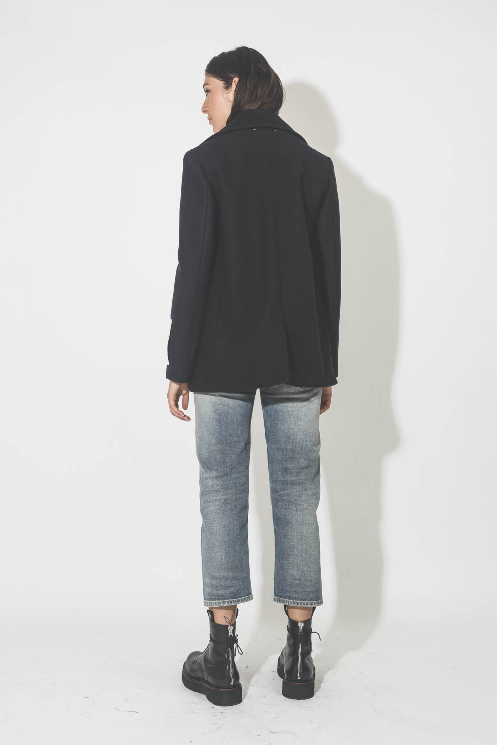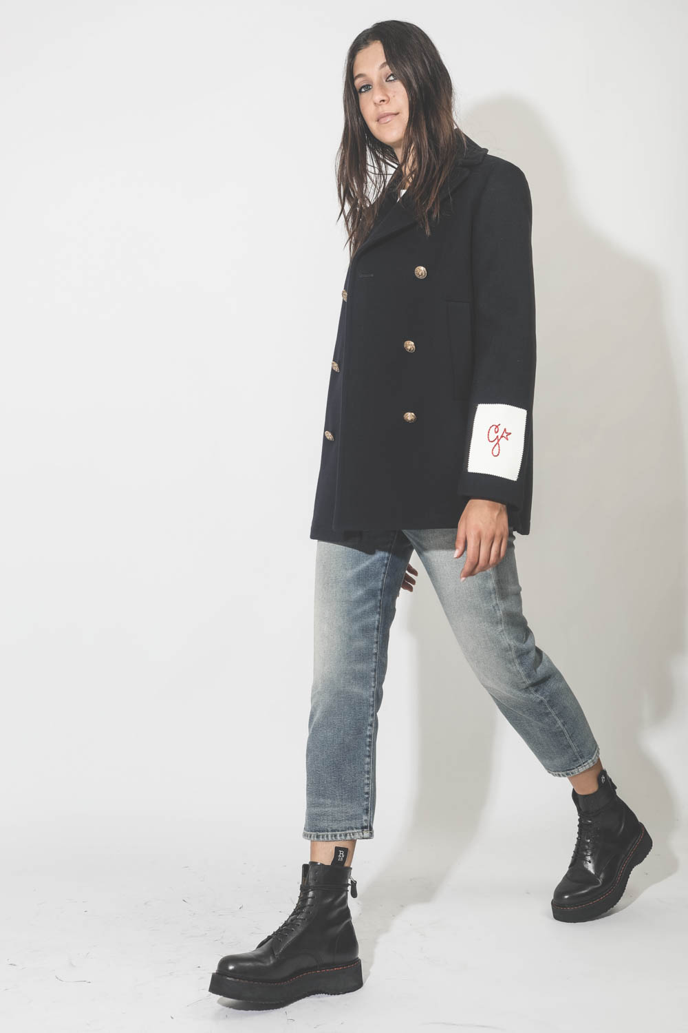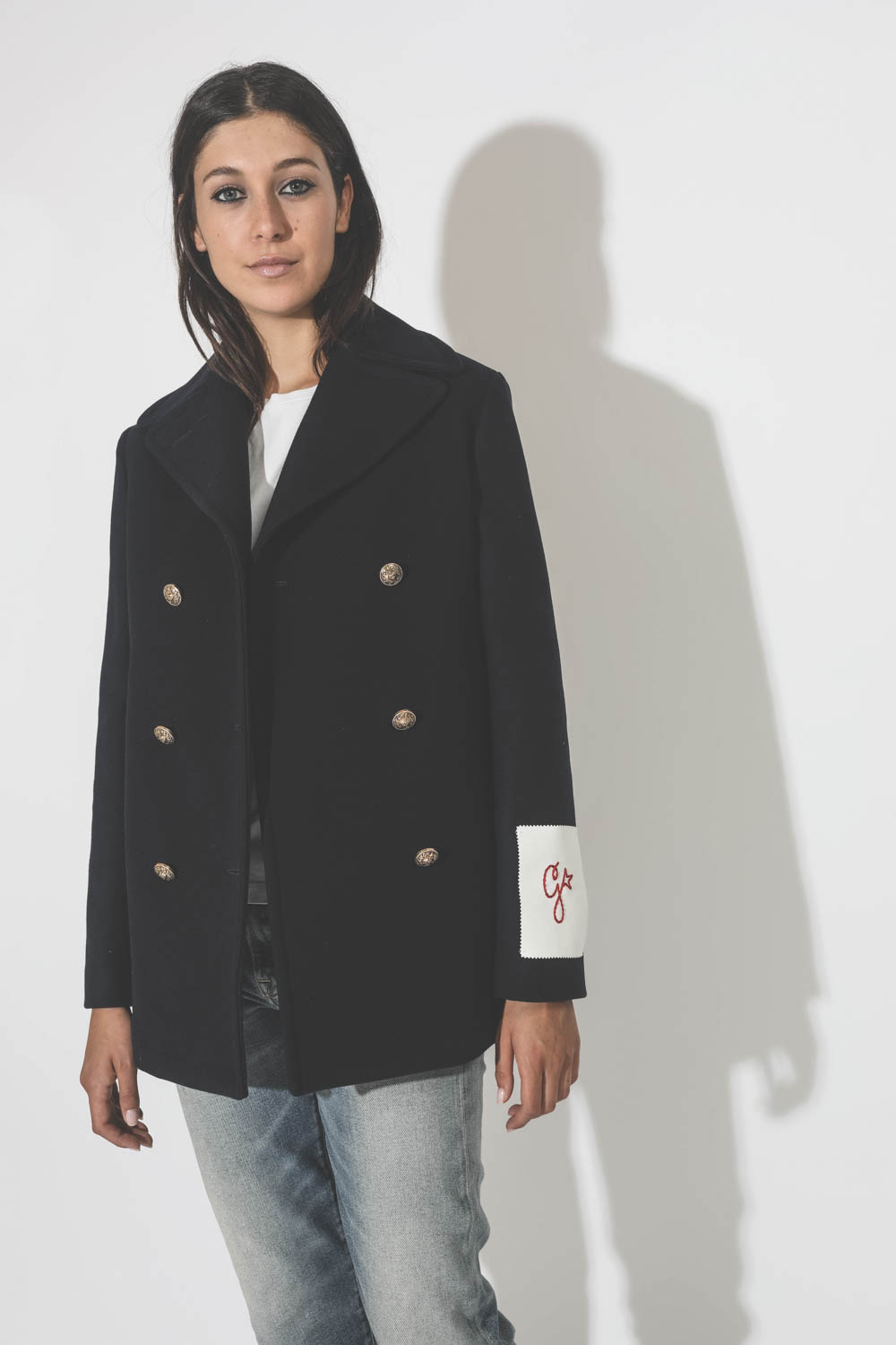 - Manteau caban - Manches longues - Col classique cranté - Deux poches passepoilées - Fermeture croisée avec boutons croisés - Un patch amovible blan logo Golden Goose - Fabriqué en Italie - Composition: 72% laine vierge 28% polyamide - Doublure: 64% viscose 36% rayonne