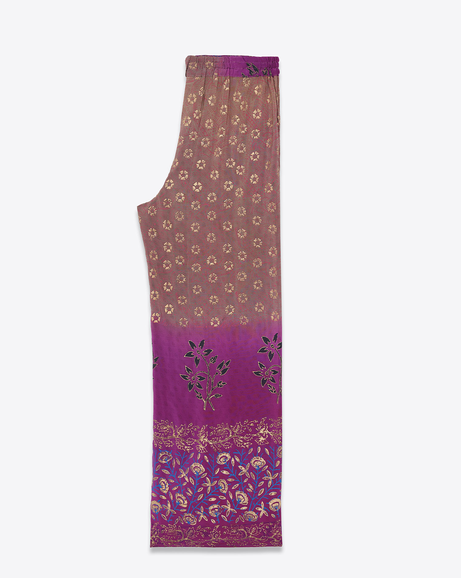 Pantalon Paul 2669 Hand.So.On en soie imprimée vintage. Pièce unique.
