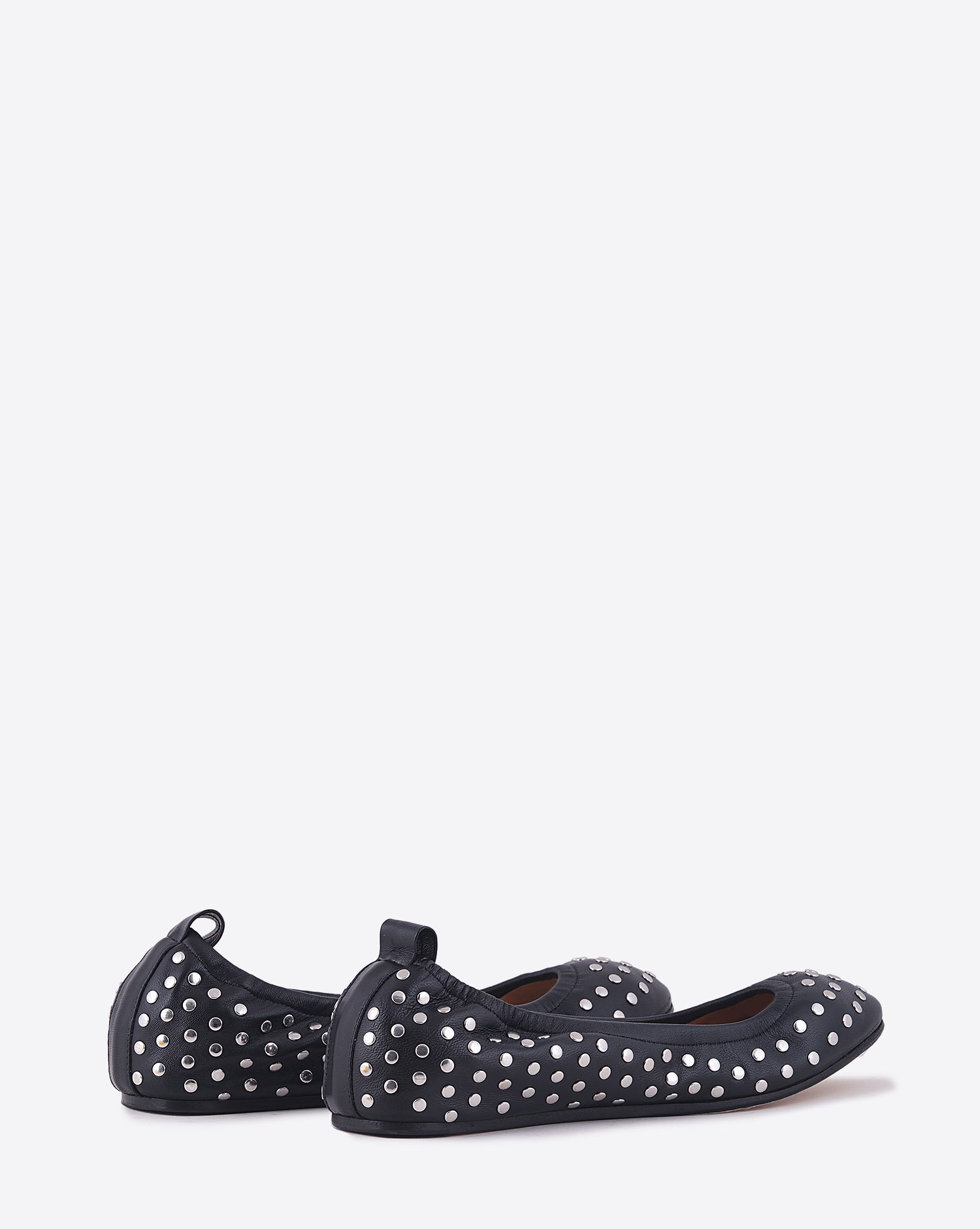 - Ballerines - Bout rond - Ouverture élastique - Cuir clouté argenté - Talon plat - A enfiler avec languette arrière - Doublure - Composition: 100% cuir d'agneau