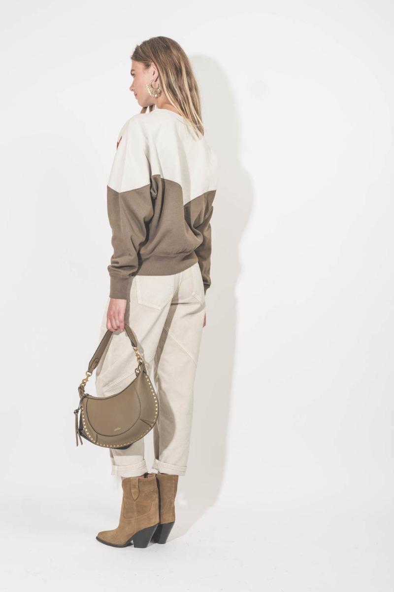 Version lumineuse du best-seller de la collection FW25, le jean Catarina Isabel Marant en denim écru insuffle une touche de fraîcheur au vestiaire d’automne. Sa coupe large et sa taille haute dessinent une silhouette élancée, tandis que les surpiqûres et les détails utilitaires signent l’élégance décontractée chère à la Maison.