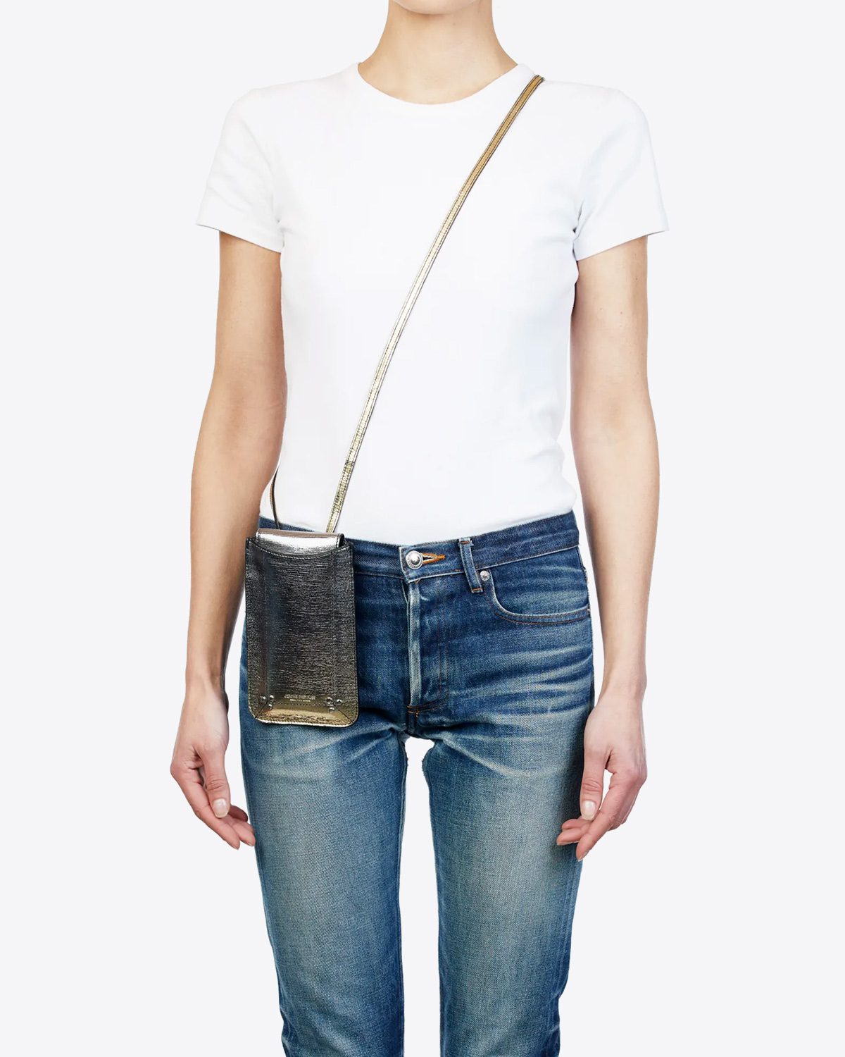 Etui mobile Jérôme Dreyfuss en cuir lamé dégradé or.