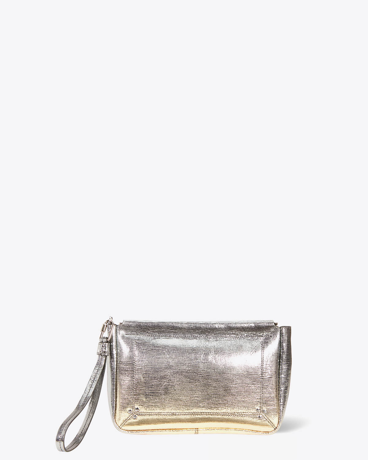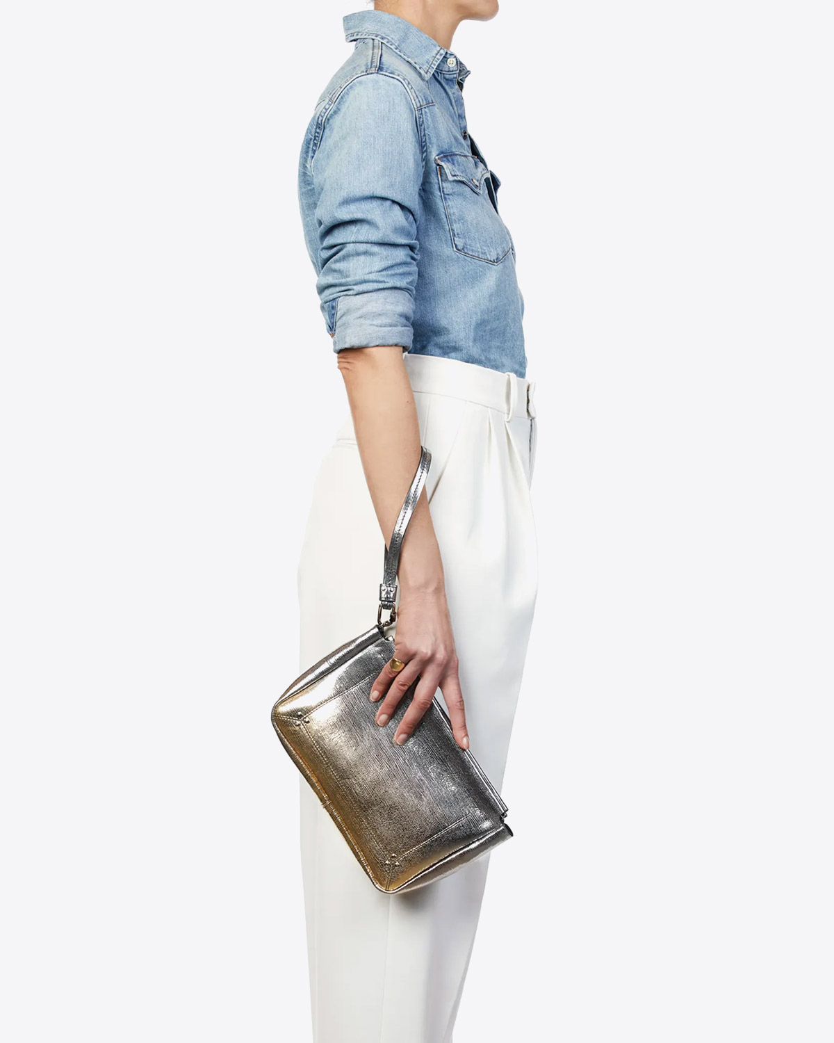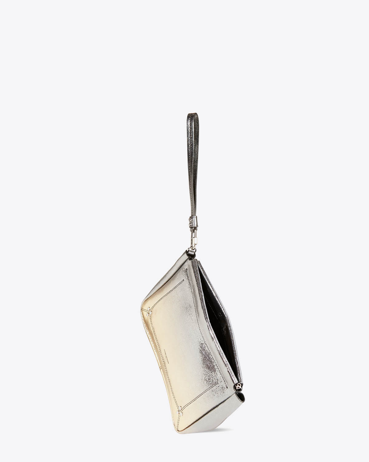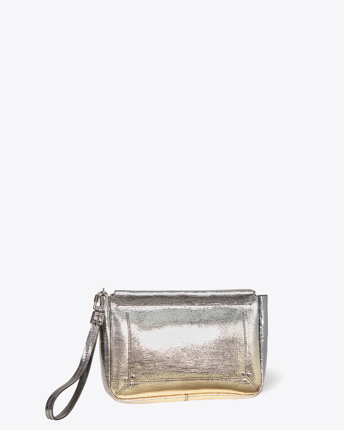 Pochette Clap L Jérôme Dreyfuss en cuir lamé dégradé or.