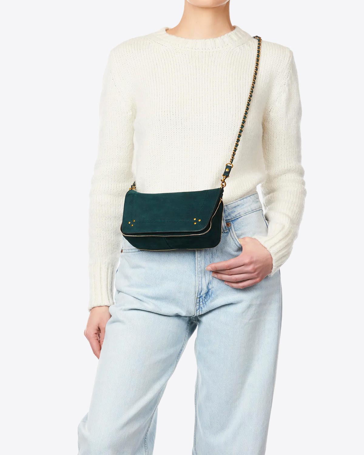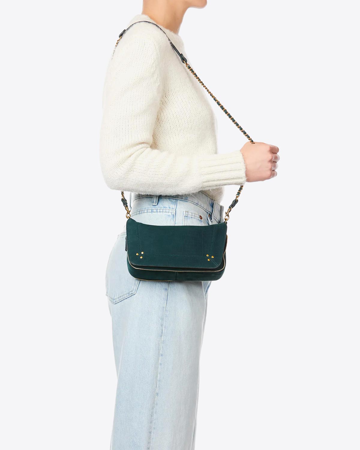 Le best-seller du créateur star Jérôme Dreyfuss revient avec de nouvelles couleurs encore plus séduisantes ! Le sac Bobi format S est décliné cette saison en cuir imprimé croco couleur canard, un vert profond qui frôle le bleu. Magnifique et charismatique, ce sac idéal pour le quotidien apporte une élégance discrète et promet un grand sens pratique. Le rabat et la bandoulière en chaîne sont les élément distinctifs caractéristiques de la marque. On adore ce modèle iconique dans cette nouvelle couleur si féminine !