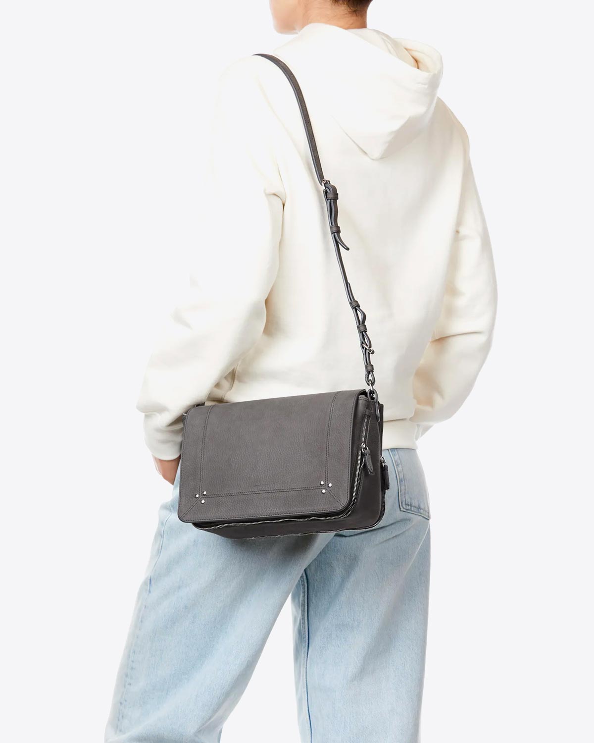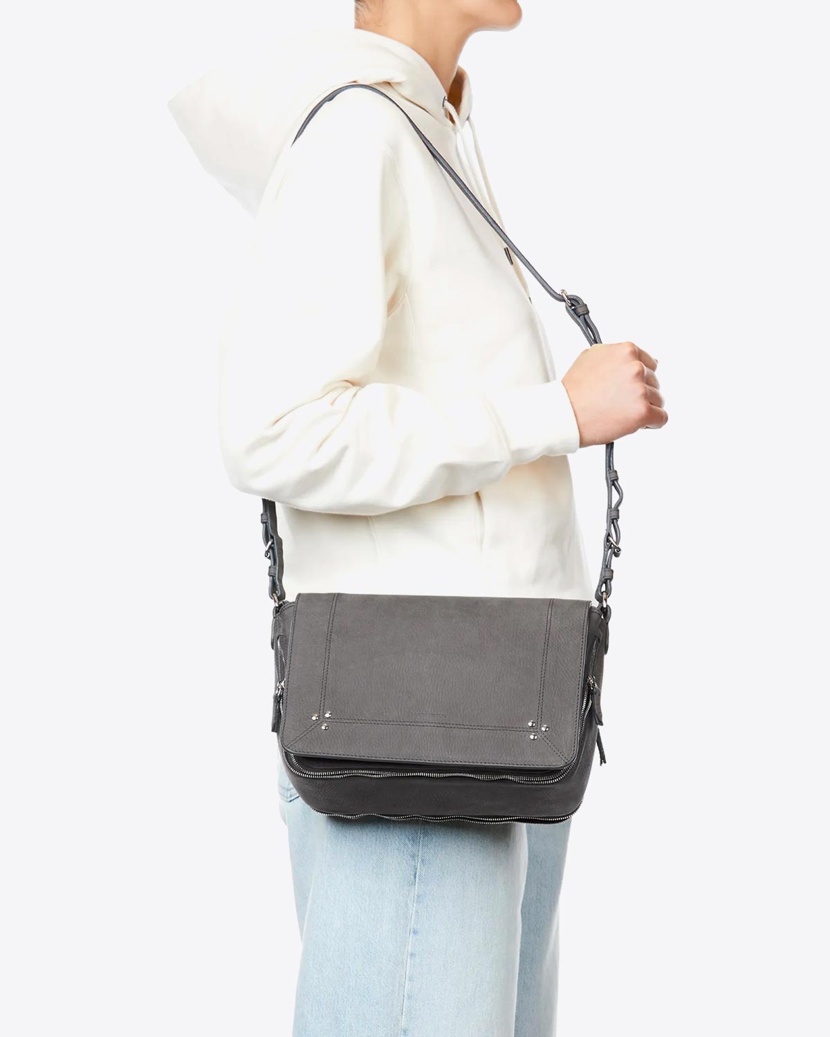 - Sac besace porté épaule ou crossbody - Fermeture rabat aimantée - Bandoulière réglable et ajustable - Rivets en métal, signature de la maison Jérôme Dreyfuss, à l'avant - Trois compartiments à l'intérieur dont un zippé - Aménagement pour cartes - Une lampe et un lien porte-clés à l'intérieur - Composition: 80% veau 20% chèvre - Doublure: 100% coton