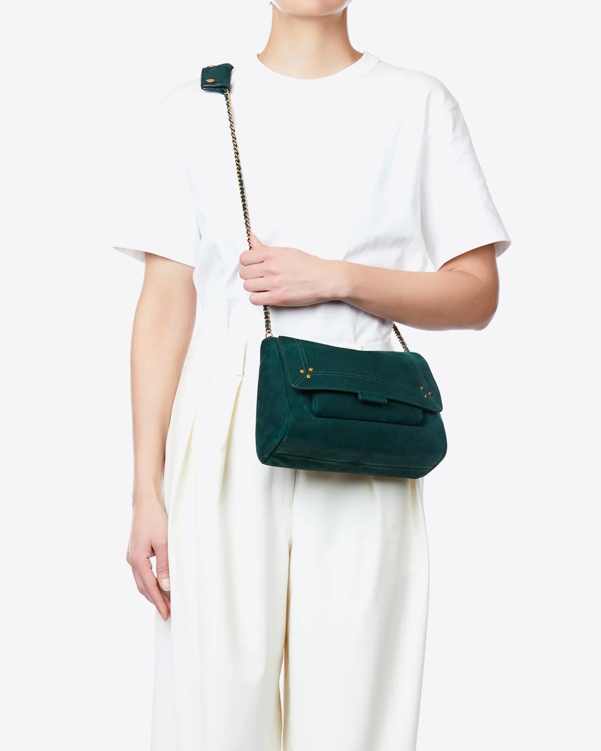 Sac Lulu M Jérôme Dreyfuss en cuir imprimé croco vert foncé.