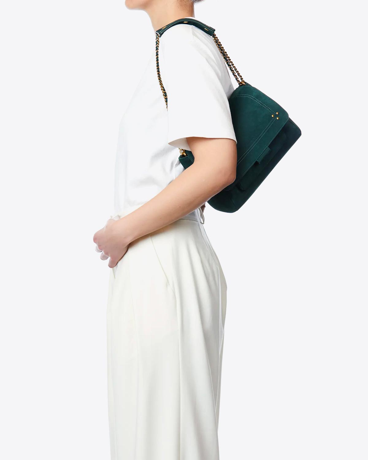 - Sac besace moyen format - Bandoulière chaîne en cuir ajustable et amovible - Large patte en cuir à pression à l'épaule - Fermeture à rabat aimantée - Poche sous le rabat à l'avant du sac - Un grand compartiment - Poche zippée et plaquée à l'arrière du sac - Petits rivets métalliques, touche emblématique de la maison Jérôme Dreyfuss - Lien avec porte-clés à l'intérieur - Composition: 95% taurillon 5% chèvre - Doublure: 100% coton