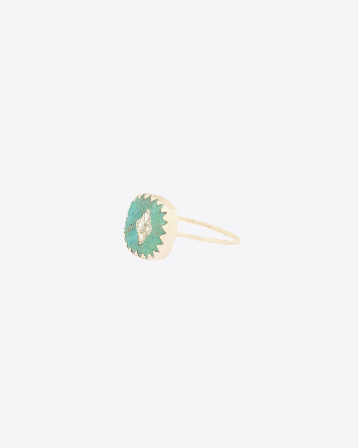 - Bague anneau fin - Pierre turquoise sertie Or et diamants polki incrustés sur argent - Composition: Or rose 9 carats - Diamants: 0,04 carats